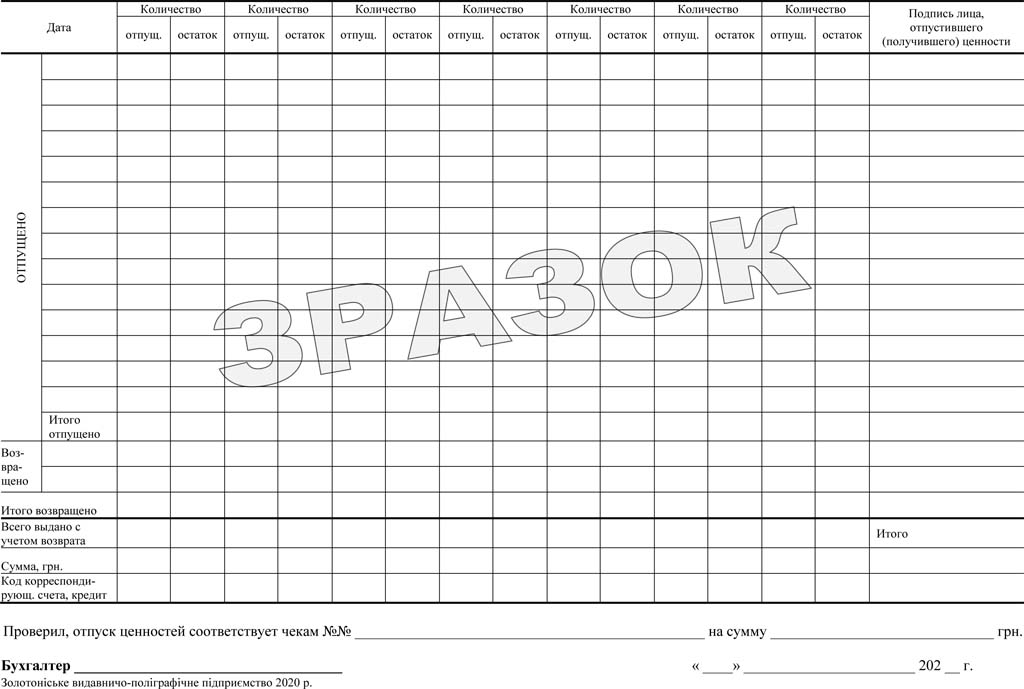 «Лимитно-заборная карта №___ на получение материальных ценностей»