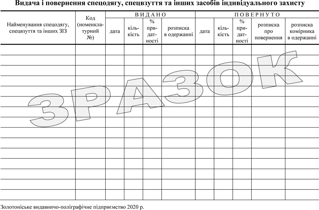 №___ обліку спецодягу, спецвзуття та інших засов індивідуального захисту - папір офсетний щільністю 170г/м2, формат
