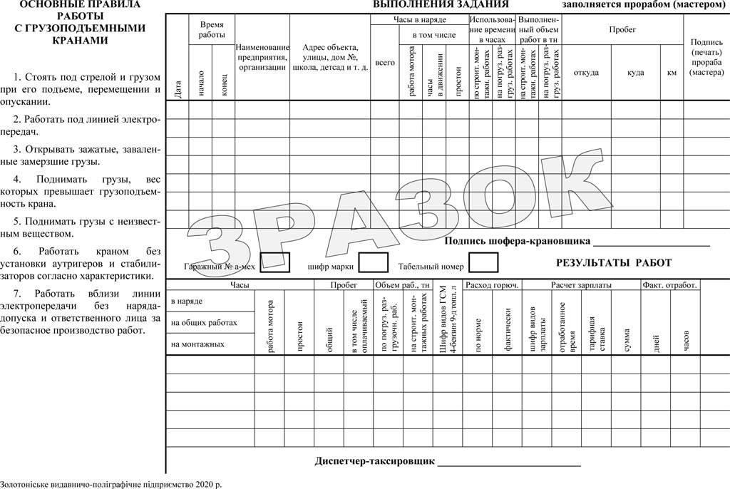 Бланк «Путевой лист автокрана №__» - папір газетний, формат А4, друк двосторонній.