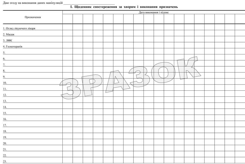 Бланк форми № 003-2/о «Карта хворого денного стаціонару
