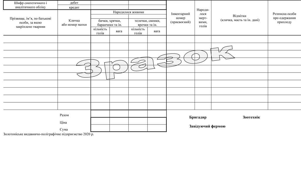 Бланк «Акт №___на оприбуткування приплоду» форма №95 – папір газетний, формат 297*132, друк двосторонній