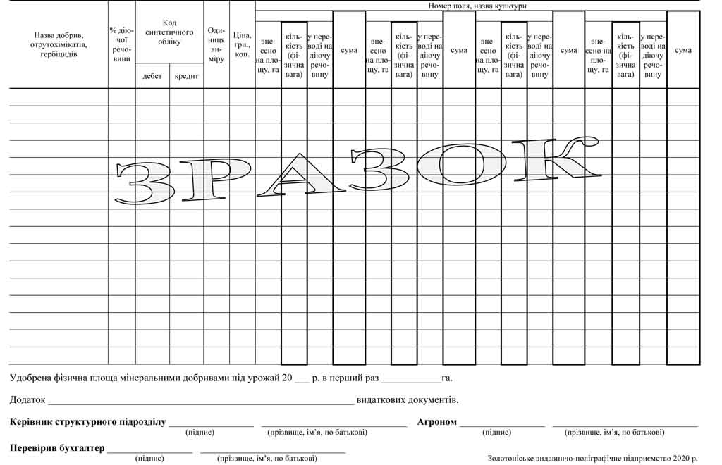 Бланк «Акт №___на використання мінеральних,органічних і бактеріологічних добрив та засобів хімічного захисту рослин» форма №ВЗСГ-3 – папір газетний, формат А4, друк двосторонній.