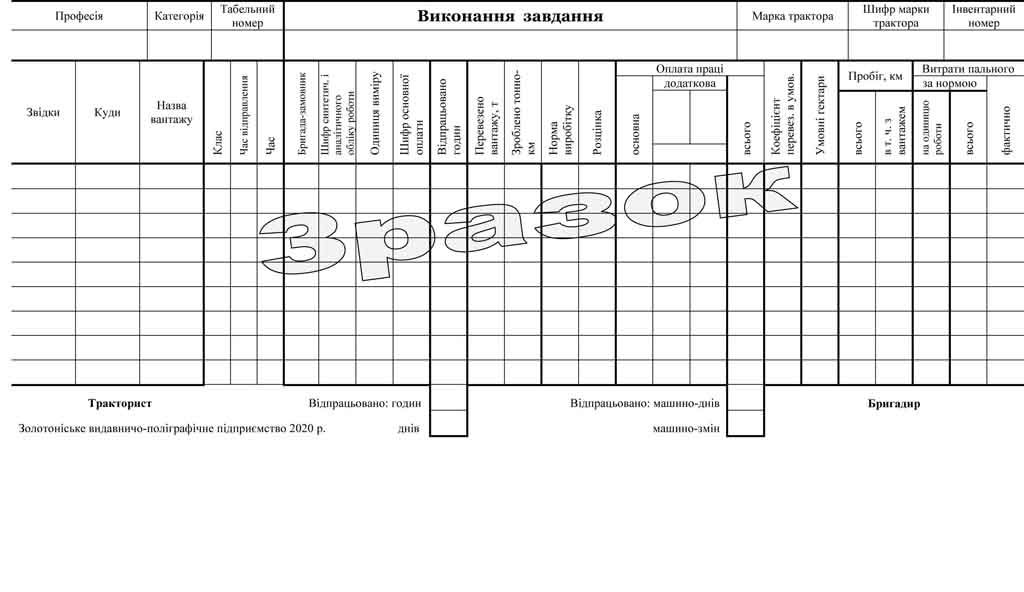 Дорожній листок тракториста №