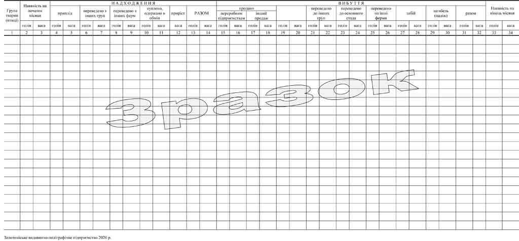 Бланк «Звіт про рух тварин та птиці на фермі» форма № ПБАСГ-13 – папір газетний, формат 420*213, друк двосторонній
