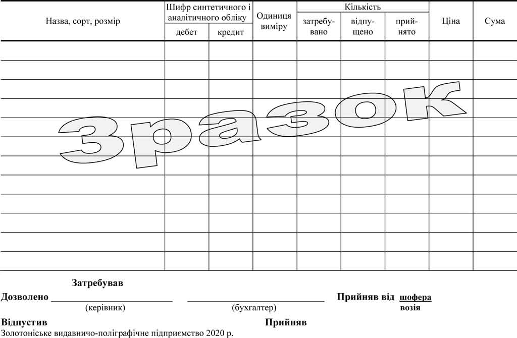 Бланк « Накладна №___ (внутрігосподарського призначення)» форма №87 – папір газетний, формат А5, друк двосторонній.