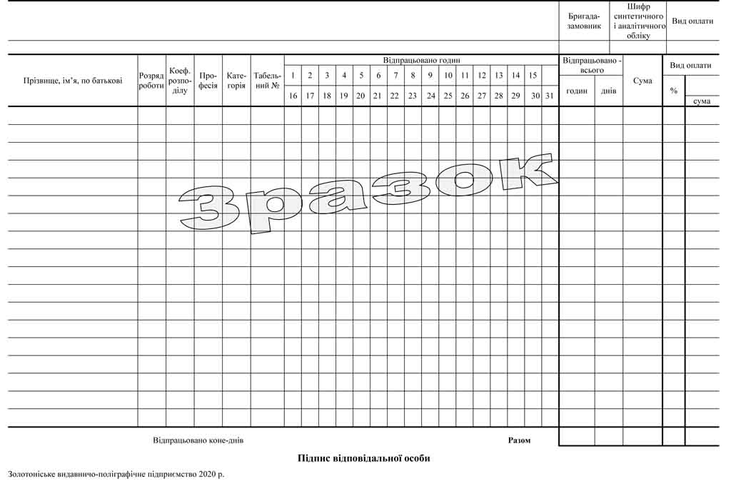 Бланк « Наряд №___ на відрядну роботу (для бригади)» форма №26 – папір газетний, формат А4, друк двосторонній
