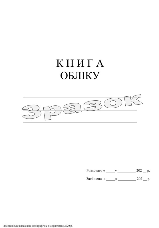 Книга обліку (велика клітинка)- формат А4 (книжна орієнтація), папір газетний, 50 листів, метод зшивання – скоба, палітурка – папір кольоровий щільністю 160г/м2
