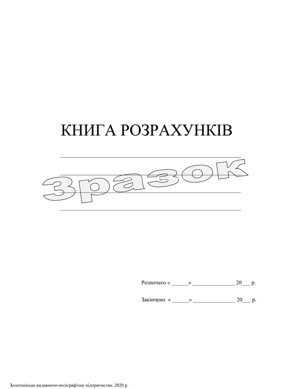 Книга розрахунків - формат А4 (книжна орієнтація), папір газетний, 50 листів, метод зшивання – скоба, палітурка – папір кольоровий щільністю 160г/м2.
