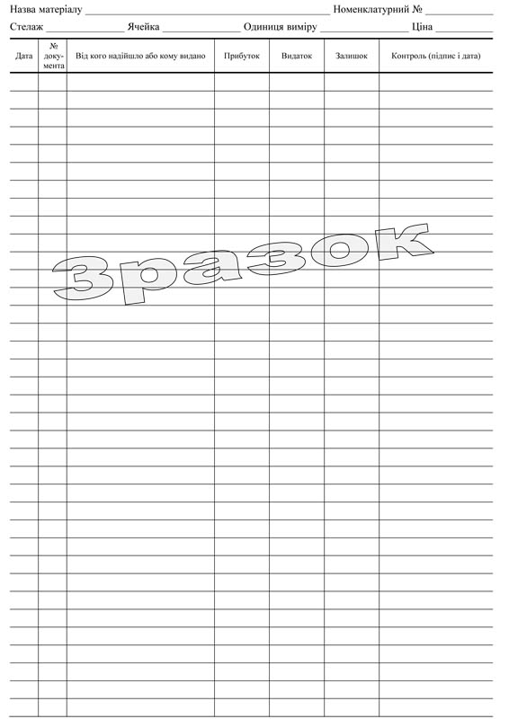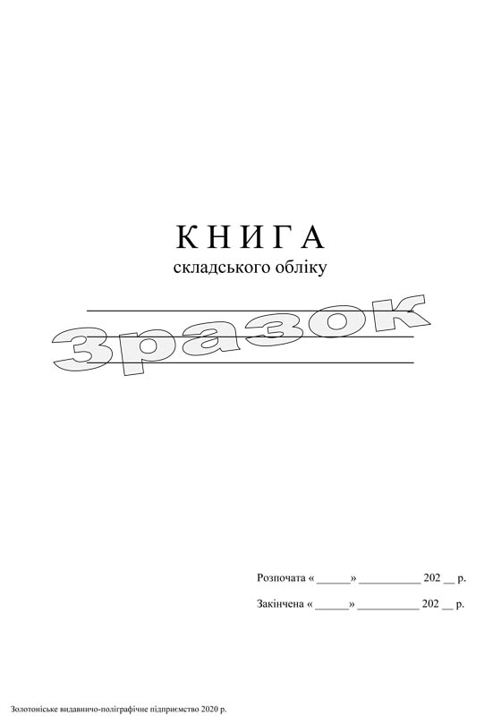 Книга складського обліку - формат А4 (книжна орієнтація), папір газетний, 50 листів, метод зшивання – скоба, палітурка – папір кольоровий щільністю 160г/м2.