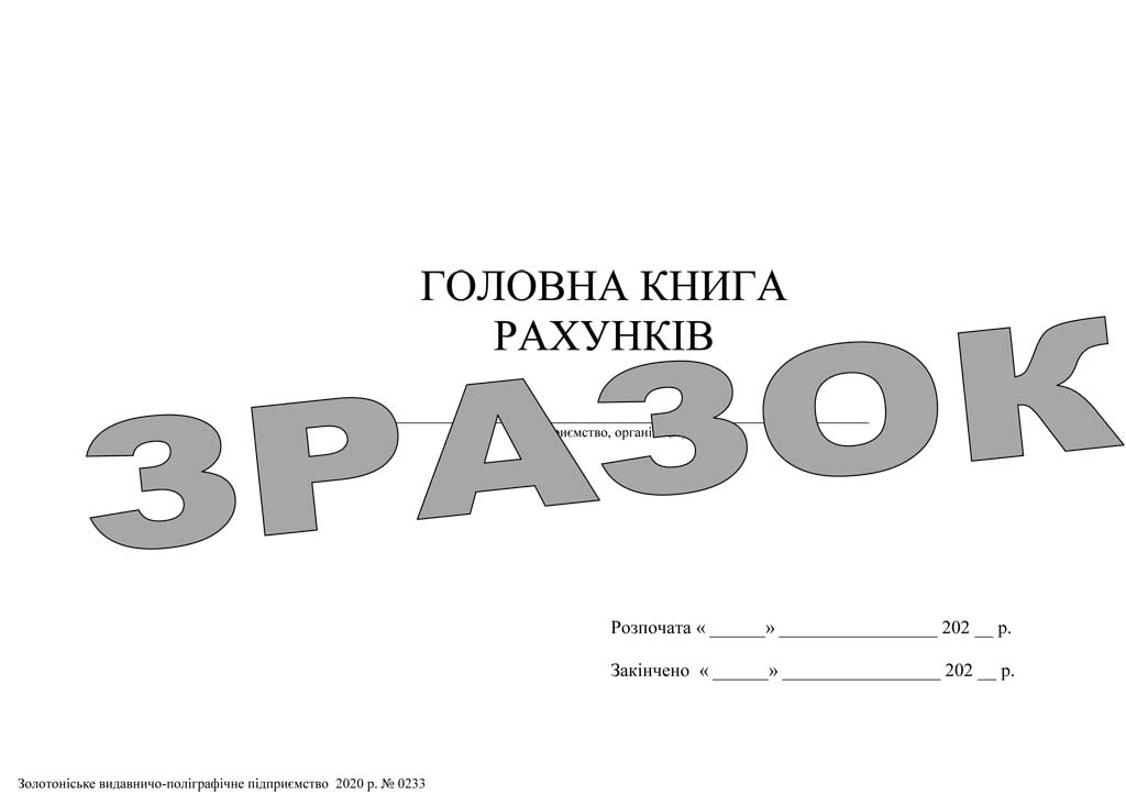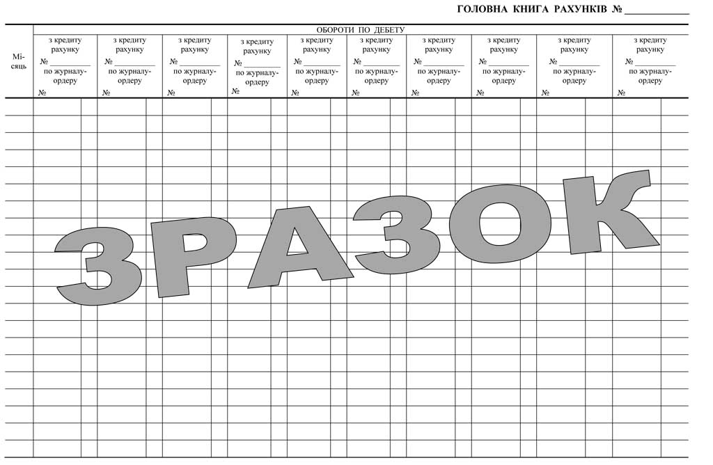 Головна книга розрахунків – формат А4, папір газетний, орієнтація альбомна, 50 листів, палітурка - кольоровий папір щільністю 160г/м2, метод зшивання –скоба.
