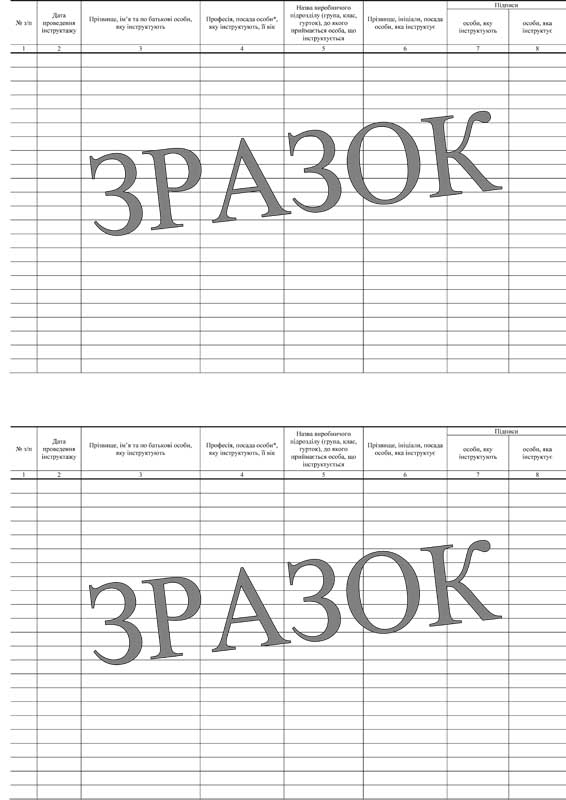 інструктажу з питань охорони праці– формат А4, папір газетний, орієнтація