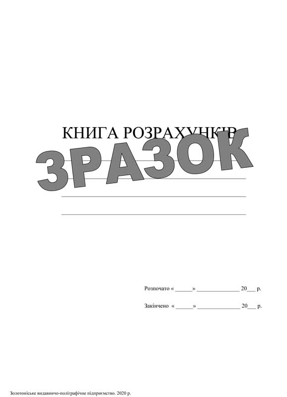 Книга розрахунків– формат А4, папір газетний, орієнтація книжна, 50 листів, палітурка - кольоровий папір щільністю 160г/м2, метод зшивання –скоба.