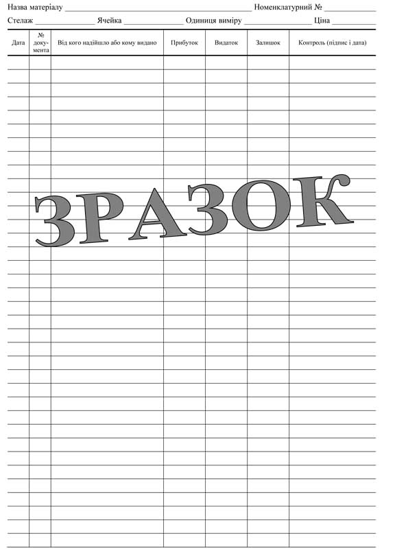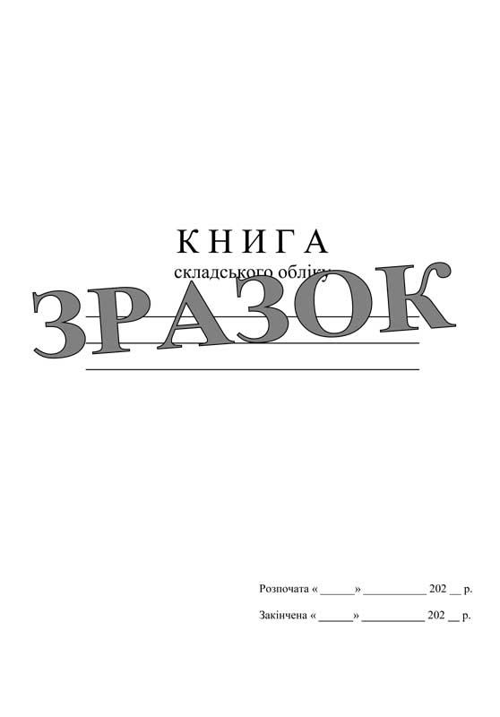 Книга складського обліку– формат А4, папір газетний, орієнтація книжна, 50 листів, палітурка - кольоровий папір щільністю 160г/м2, метод зшивання –скоба