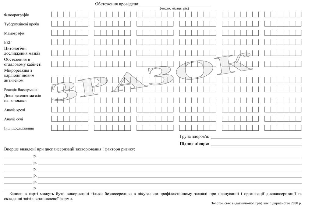 Бланк «КАРТА ОБЛІКУ ДИСПАНСЕРИЗАЦІЇ №__» форма No131/о – папір газетний, формат А4, друк двосторонній