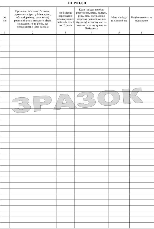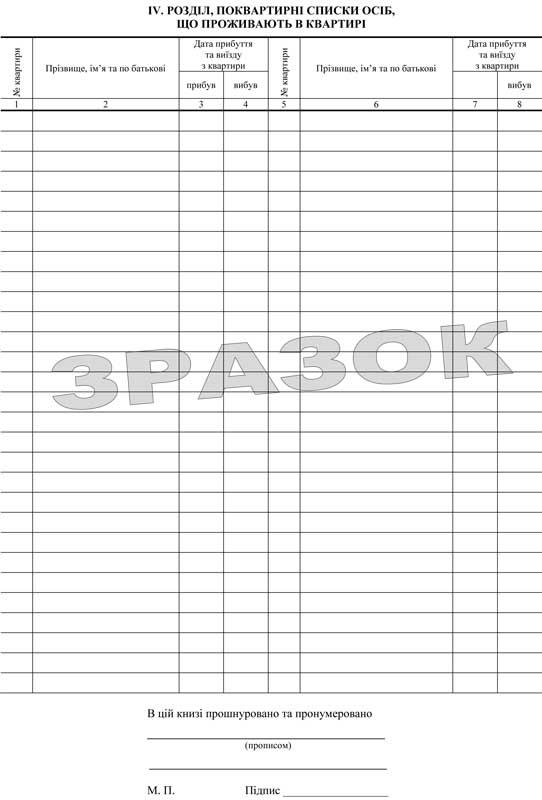проживають в буд. №___ - папір газетний, формат А4, 14 листів, метод зшивання –