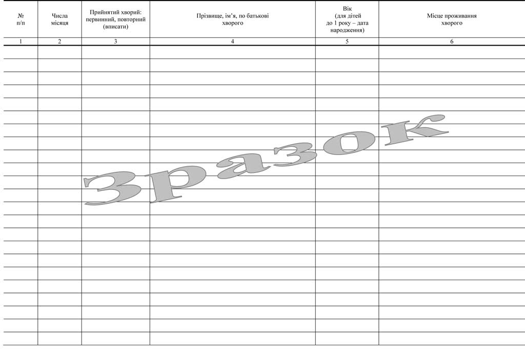 Журнал реєстрації амбулаторних хворих - форма №074/о, папір газетний, формат А4, альбомна орієнтація, 100 листів, тверда обкладинка (картон палітурний, папір щільністю 80г/м2). Ціна при замовленні від 10шт - 163грн/шт, 5-9штук - 179грн/шт, 1-4 штуки - ціну уточнюйте по телефону