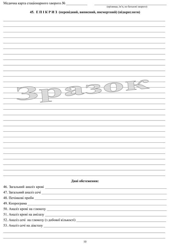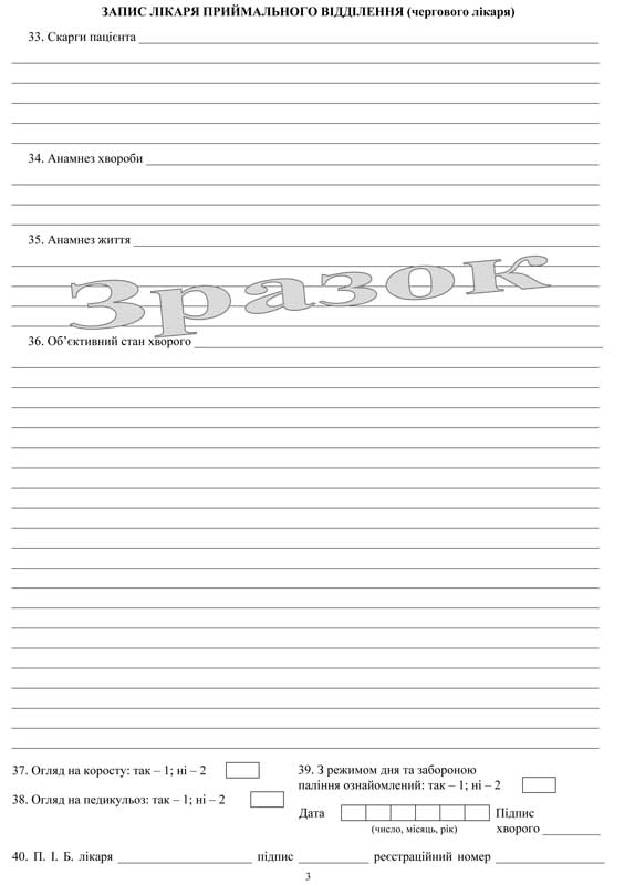 Бланк "Медична карта стаціонарного хворого №_" форма №003/о - папір газетний,3 листи форматом А3, друк двосторонній