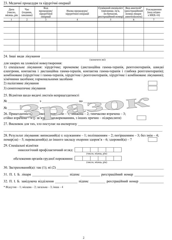 Інформована добровільна згода пацієнта на проведення діагностики, лікування та на проведення операції та знеболення